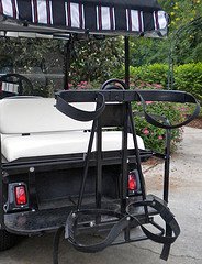 1. What Direction the Rack Faces For those who will be using their golf bag rack on the rear seat, the rack can face the bags away from the back seat passengers or face the bags towards them 2. With or Without the Grab Bar You can buy the grab bar and the golf bag rack separately or as a kit that provides both. The rack slips over the required grab bar. 3. With Additional Accessories 4. Replacement Straps & Buckles Check out this golf cart accessory here for added security for back seat riders, for those who need to replace straps or buckles or for golfers who want to use their cart on the course: P.S. Hit the Facebook Like Button in the Left Upper Corner if You like the page.