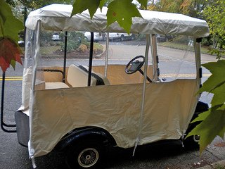 Enclosures can range in price from $60 to $600. We have owned expensive custom Sunbrella enclosures and universal ones. Surprisingly you can get some high quality covers made out of durable and thick canvas for less than $100. An inexpensive cover is what is called a universal enclosure - meaning it can fit most Club, Yamaha, EZGo and other golf cart makes. 2. Size The size of a universal or custom golf cart enclosure is dependent on whether it is a 2 passenger or 4 passenger golf cart and the size of the top. An extended top may require a different size. Be sure to measure the length of your roof before ordering a cover. 3. Three or Four Sided If you have a windshield, order a 3 sided enclosure. Four sided ones cover the windshield making it difficult to see and even if it has a zippered front that can come down, it doesn't look that great and of course it isn't necessary. Get more use out of your golf cart more months out of the year with this essential golf cart accessory. Find out my recommendations for an over the top or track system as well as covers that use a snap verses a hook to attach the bottom of the cover to the cart. More Tips with Pictures on Selecting the best Enclosure for You